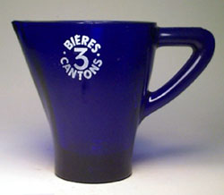 Besonderheit : --- Blaues Glas, ausgeweitet, Henkel rechts
