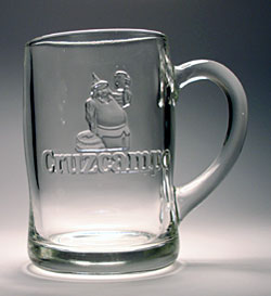 Besonderheit : --- Logo und Aufschrift geprägt, glattes Glas, taillierte Form, Henkel rechts