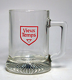 Besonderheit : --- Glattes Glas, zylindrisch, ausgedehnte Unterseite, stern-geformter Boden, Henkel rechts