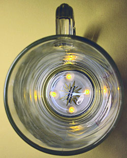 Besonderheit : --- Licht, glattes Glas, zylindrisch, ausgedehnte Unterseite, Henkel rechts