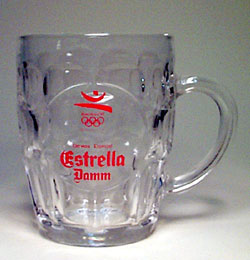 "Barcelona '92", afgeronde rechthoekige kuiltjes, uitlopende vorm, ronde drager, oor rechts