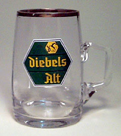 Kenmerken : --- Effen glas, 8 binnenkant vlakken, toelopende vorm, gouden rand, oor rechts