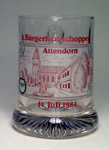 "Attendorn, 14. Juli 1982", effen glas, recht model, onderkant breed, sterribbels in de bodem